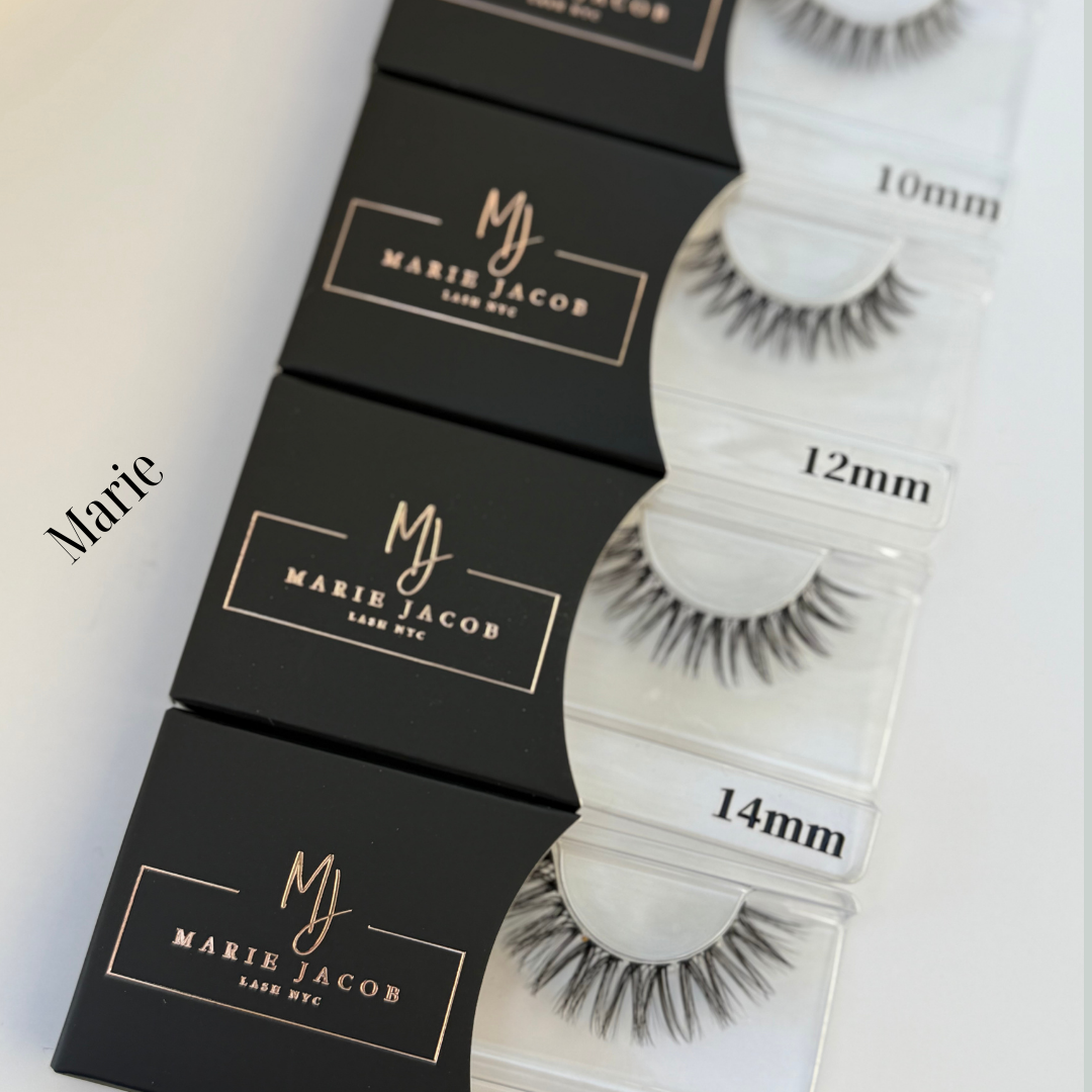 Our magnificently voluminous Marie lashes are curated to deliver an extravagant and bold look. Characterized by ample volume and thickness, these lashes aim to make a statement. They are full of volume, curl and magnificent length. Made with two crisscrossing V shapes per wisp for the perfect touch of drama.